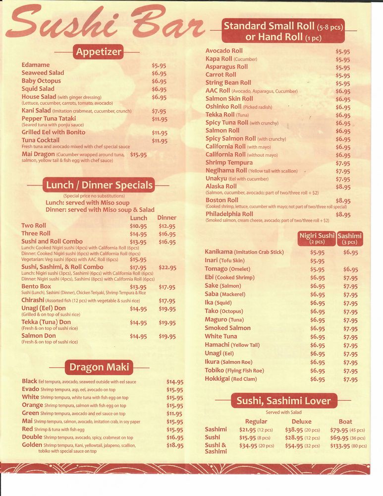 Mai Dragon, a prominent Pan Asian restaurant in Hanover, MD, offers a diverse menu including Dim Sum and Sushi options that cater to a wide range of preferences. The establishment provides various amenities such as delivery, takeout, and vegan choices, ensuring a satisfactory dining experience. With positive reviews praising their authentic dishes, like crispy beef and lo mein, Mai Dragon stands out for its consistent quality and excellent service. Customers highlight the unique offerings like Fried Taro Shrimp Fritters and Yolk Buns, showcasing the restaurant's commitment to delivering flavorful and traditional Asian cuisine. The relaxed ambiance, efficient staff, and extensive menu selection make Mai Dragon a go-to spot for dim sum enthusiasts and those seeking an exceptional dining experience in Maryland.